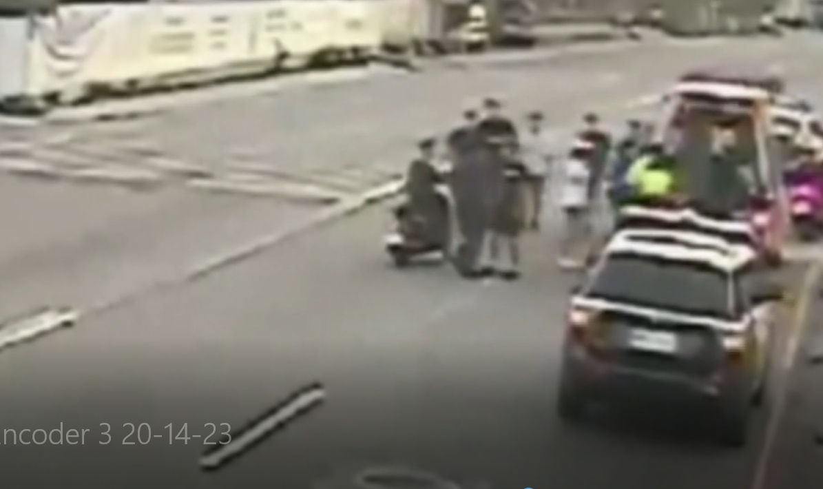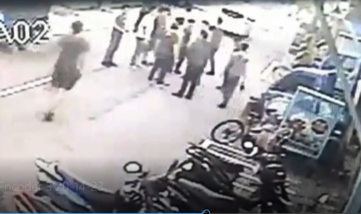 少年受了傷蹲坐在大馬路上,任由兩名男子拳打腳踢,大馬路上打架還把車子停在路中間態度囂張,兩邊人馬早在上一個路口的釣蝦場前就已經大打出手,當時白色轎車先來到門口,有人拿著棍棒武器下車,同夥也開車抵達,一看到少年出現立刻將他團團包圍。