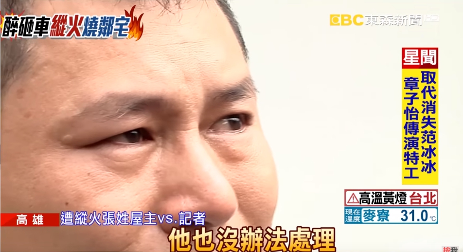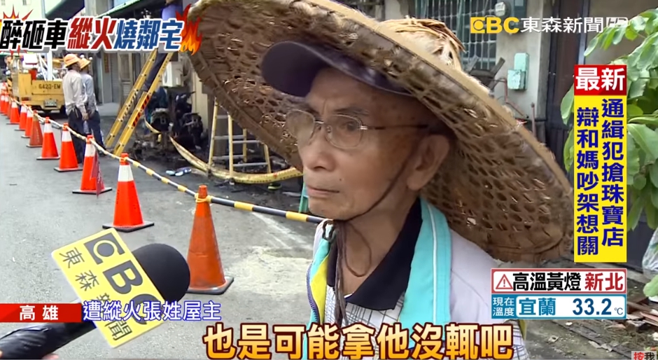 遭縱火張姓屋主:「丟玻璃瓶、砸車呀,他開心就好,也是可能拿他沒輒吧。」