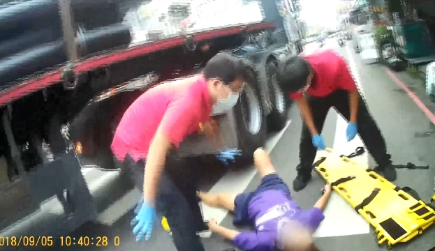 嘉義市消防局後湖分隊小隊長龔建豪:「附近民眾表示,看到當時的情況以為這下患者穩死的,聯結車司機表示,突然聽到碰撞聲後立即煞車,所幸他有立即煞車,沒有將患者輾過去。」還好聯結車駕駛車速緩慢,聽到撞擊聲後立即煞住,才避免了一場可怕的意外,警方再次提醒,遠離大車,萬一像這種狹路相逢的情況,為了自身的安全,最好讓大車先行。