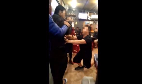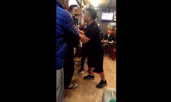 影片中黑衣男子作勢要動手打人,被兩名男子拉住,他不停大譙三字經,還嗆老闆「你爸大尾的?」並要老闆把他甩出去的拖鞋撿回來。老闆看起來則相當無助,不停安撫黑衣男,甚至一度單膝下跪求情。另外一頭,黑衣男的妻子和女店員大吵,妻子大吼「衝X小」,氣勢和老公相比有過之而無不及,老闆見狀趕緊上前勸架,不少客人被影響,紛紛溜到店外。