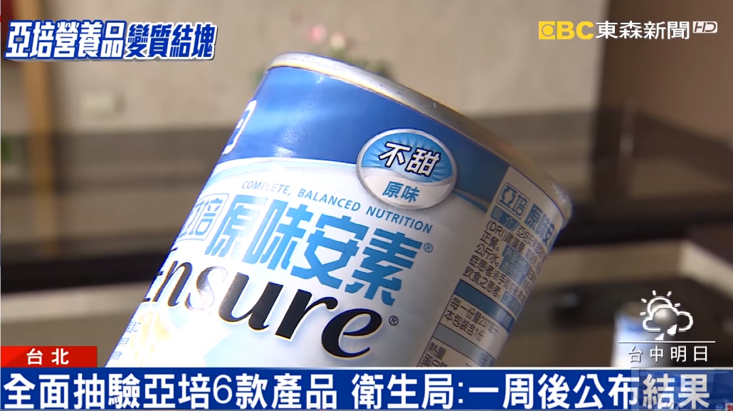「亞培安素原味鐵罐」傳出結塊變質,經過亞培公司初步調查,表示還有普寧勝、腎補納等另外五件產品也被民眾反應有結塊現象,從今年1月到8月總共有六起,食藥署表示今(7)日傍晚就會公布初步調查結果。