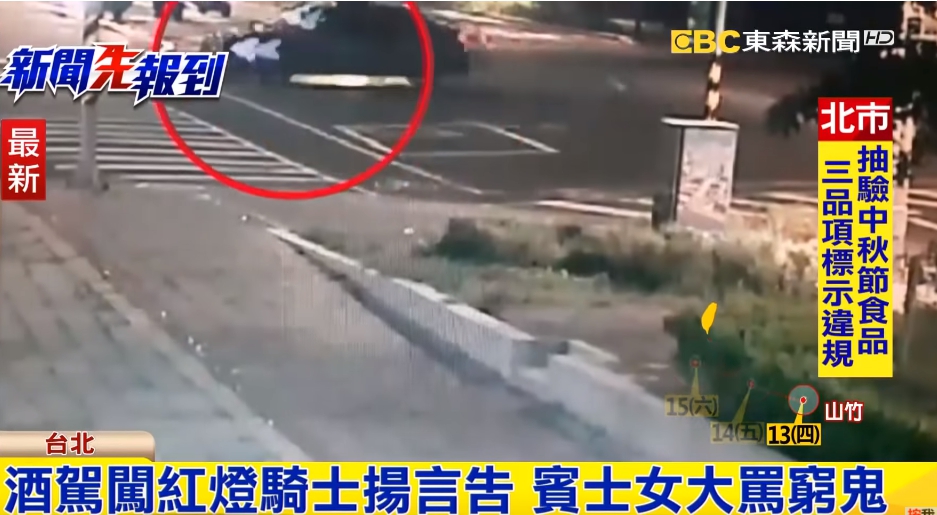 酒駕開車,闖紅燈差點碰上綠燈通過的機車,機車騎士氣不過上前理論,但賓士女一聽到機車騎士要報警,突然臉色一變,不但揚言要叫兄弟,還罵機車騎士窮鬼,最後踹了機車開車揚長而去,氣的騎士報警處理。
