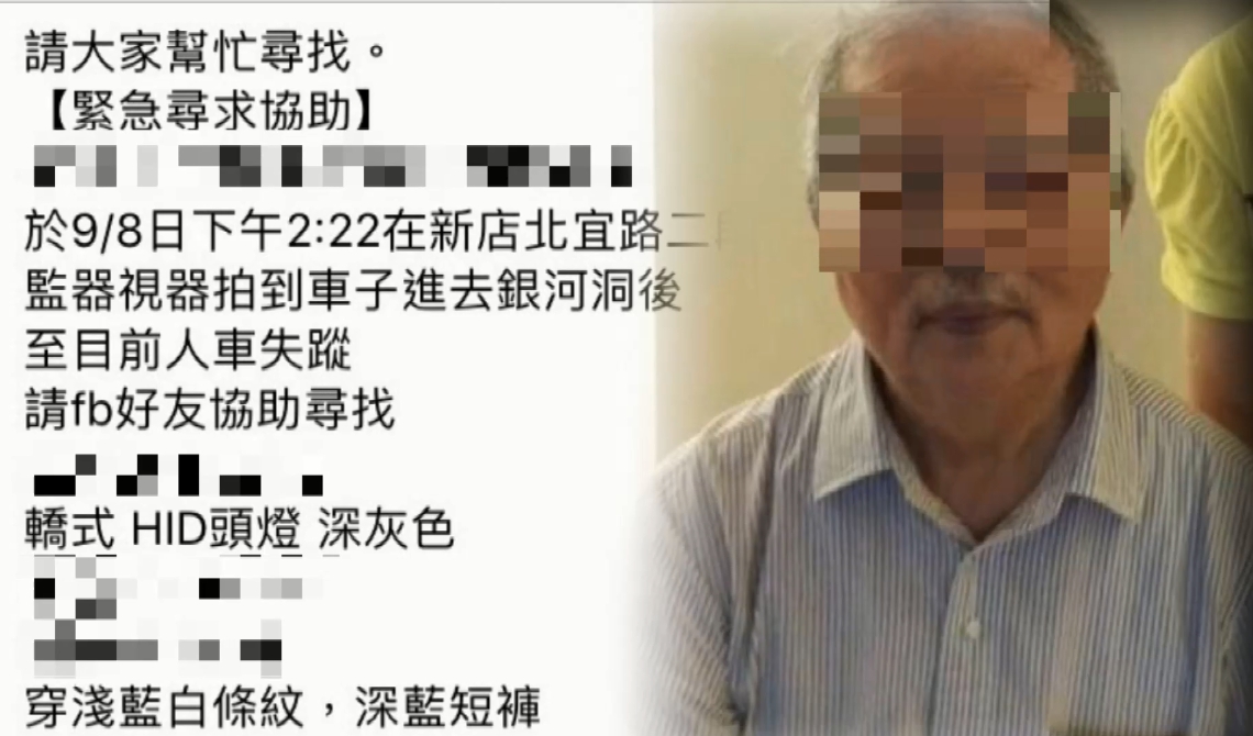 一輛黑色轎車經過,直直往新店山區步道裡面開,但這部車的駕駛,賴姓男子卻再也沒出來,讓家屬好心急,在臉書上po文,賴姓男子當時外出時,身穿藍色條紋上衣的他,外出後就再也沒回家,要請大家幫忙協尋。