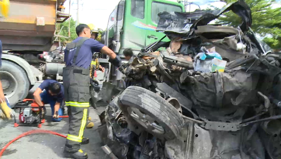 砂石車追撞停等紅燈的休旅車跟遊覽車,休旅車遭夾擊在兩大車中間,慘遭對折一半,駕駛送醫搶救還是傷重不治,主因疑似就是因為砂石車超載行駛,再加上事故地點是下坡路段,砂石車因為後方重量煞不住,才會釀成意外。