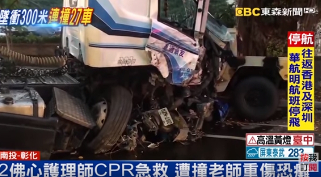曳引車衝撞27車釀成6人受傷,其中一位40歲陳姓男子傷勢最重,目前還沒有脫離險境,當下就有網友拍到,兩名熱心