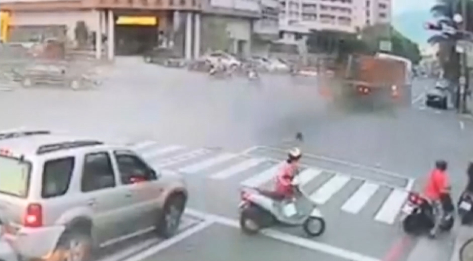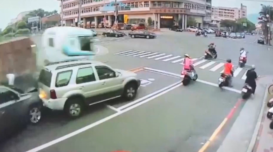 曳引車追撞27車重大事故,最新畫面流出。曳引車駕駛在下坡路段,發現