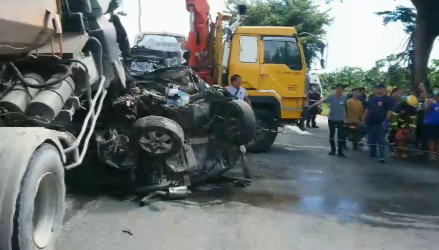 開在馬路上,前方突然塵土飛揚,瞬間連砂石車車尾都看不清楚,車子零件散落一地,一旁砂石車司機連忙拿手機報警,還以為只是砂石車撞上遊覽車,殊不知,休旅車遭兩車夾在中間,還被壓在砂石車底,車體嚴重變形,幾乎成了廢鐵,換另一個角度看,車子只剩下車頭前半段,後半段車體在強烈撞擊下,被砂石車硬生折斷,對折在車頭上方。利用鐵鍊、鋼索把自小客車從砂石車車底拉出來,場面怵目驚心,消防員利用破壞工具試圖救出駕駛,但是駕駛已經沒有呼吸心跳,送往醫院急救還是傷重不治。