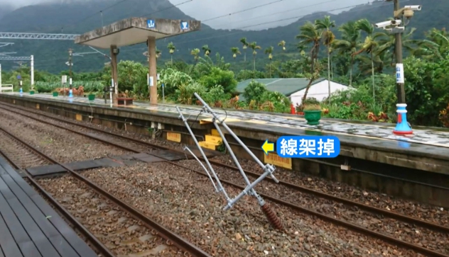 山竹颱風外圍環流吹不停,台東出現強陣風,昨天(15號)下午4點多,台東山里火車站的這棵大樹,疑似不敵強風倒下,壓斷了電車線,電力設備嚴重受損下,東幹線大亂。