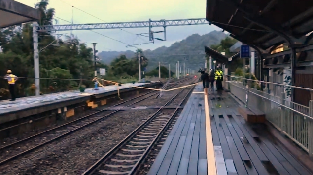 山里站站務員鐘憲文:「目前的話,現在大樹都已經移開了,斷的樹已經移開了,就是等電車線把它接好,就可以馬上搶通了。」