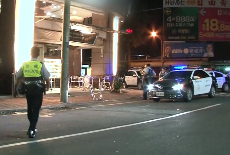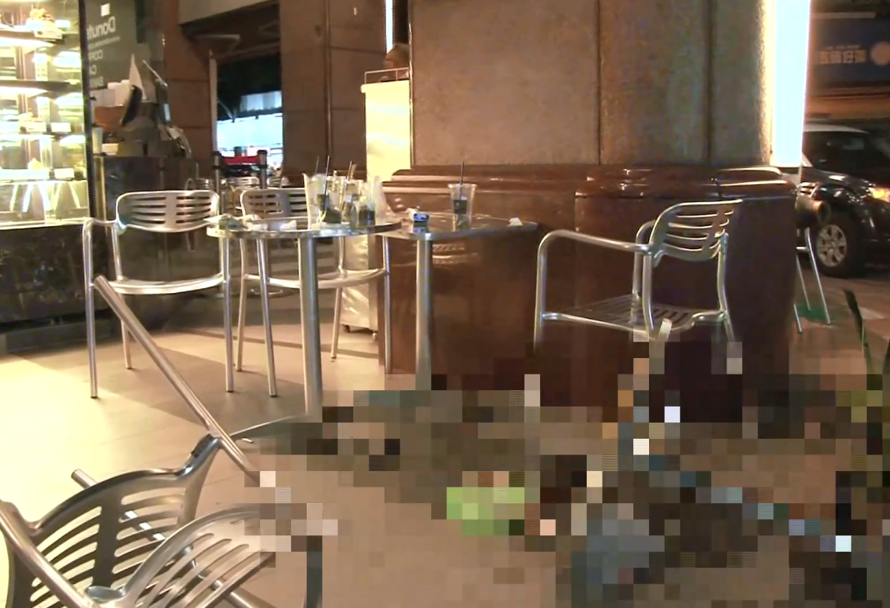高雄左營一間咖啡店發生圍毆砍人事件,只見騎樓桌椅東倒西歪,食物飲料全被打翻,地上留有大片血跡,現場還有好幾枚血腳印,穿著灰色衣服的男子,神情痛苦癱坐在一旁,他的小腿有一道長長的刀傷,雙手和脖子也全都染上血跡,警消趕緊將他攙扶到救護車上,送醫治療。