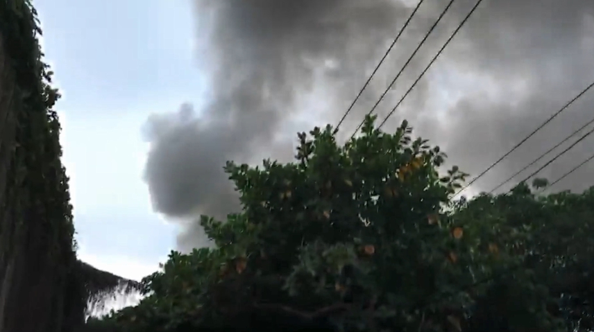 社子島某間燈飾廚具窗簾精品館後方的鐵皮屋2樓開始有濃煙竄出,消防局立刻派出3輛雲梯車、9輛特種車、14輛水箱車和3輛救護車總共65名