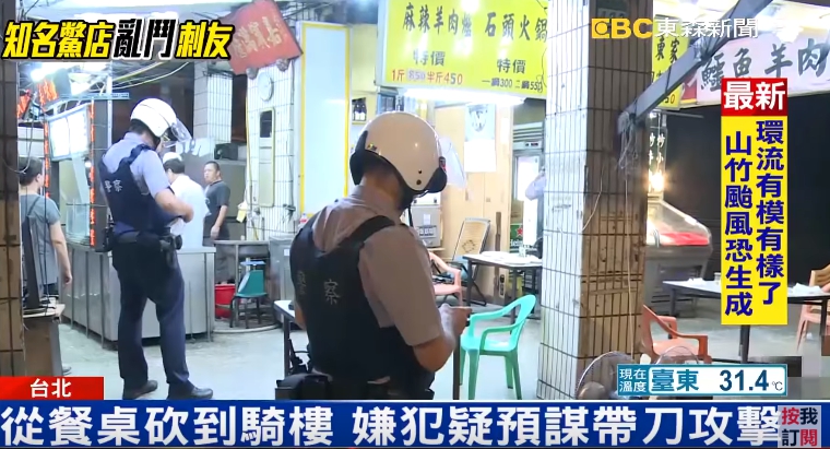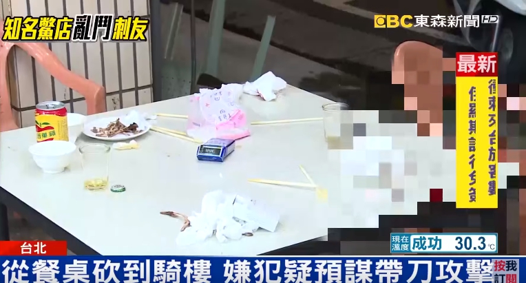 東森新聞記者張炤和:「案發當天,一共有四個人在這邊用餐,其中兩人喝了酒,疑似債務問題吵了起來,其中一方甚至拿了刀子,追砍對方,一路追砍到外面,隨後往大馬路上逃逸。」