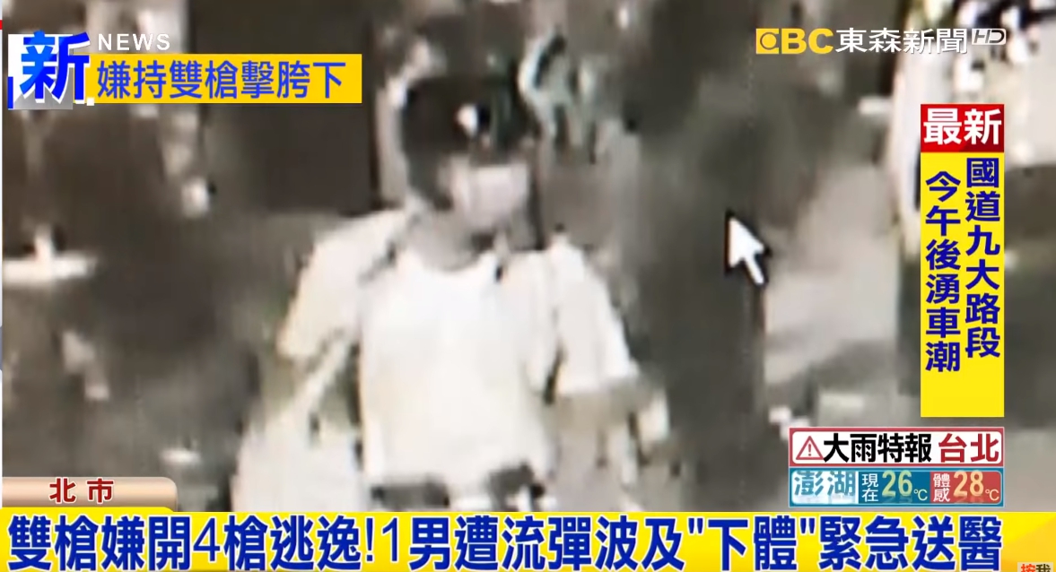 頭戴安全帽,穿著短褲,帽子刻意遮蔽臉,警方懷疑嫌犯有備而來,整起槍擊案件發生在23號晚間9點多,萬華梧州街12巷內,其中1名大陸籍林姓傷者被流彈波及,導致生殖器受傷,幸好送醫沒有大礙。