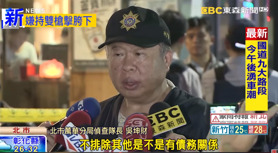 北市萬華分局偵查隊長吳坤財:「持槍進來,先朝公司裡面開了2槍,又朝烤肉的群眾開槍,目前了解是口角糾紛,不排除其他是不是有債務關係。」
