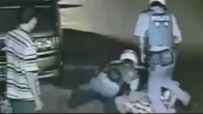 當街一連兩聲槍響嚇壞民眾,兩名醉漢就在巷子內,沿途互毆拉扯咆哮,誰也不讓誰,其中帶槍嫌犯眼看槍被搶走,勒住對方脖子,就在這時,被害人丟出槍,警方剛好到場 。兩人渾身酒氣,搶槍過程中,嫌犯激動誤觸板機,一見警方到場,一度不願配合。事發在新北市三重仁義街,晚上七點多,兩名醉漢互毆竟然