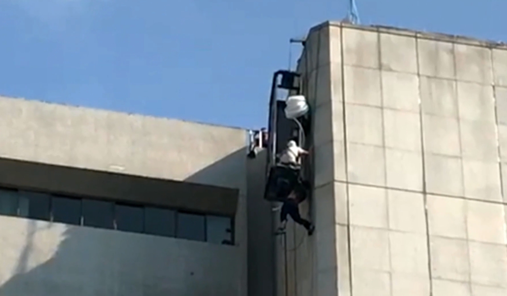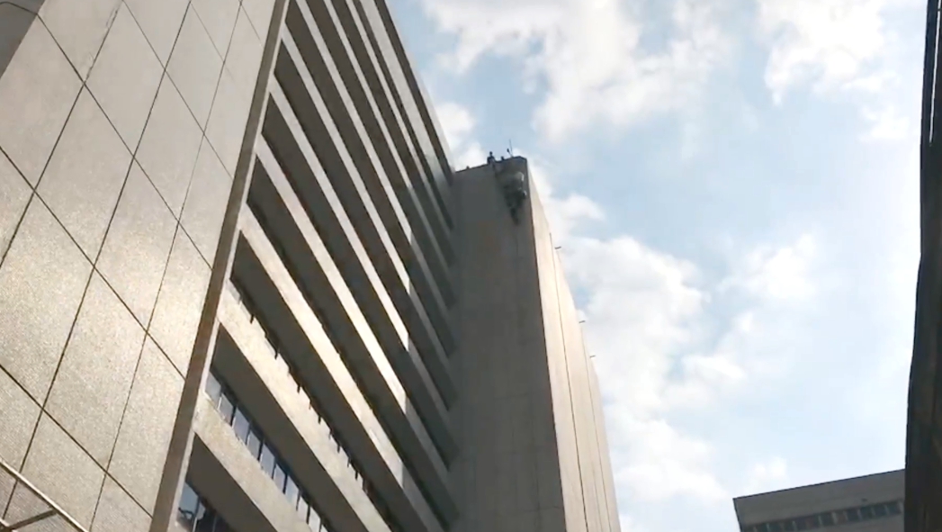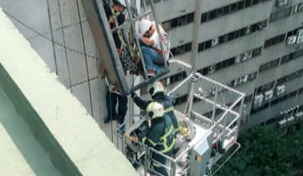 高樓外牆動彈不得,等待救援。