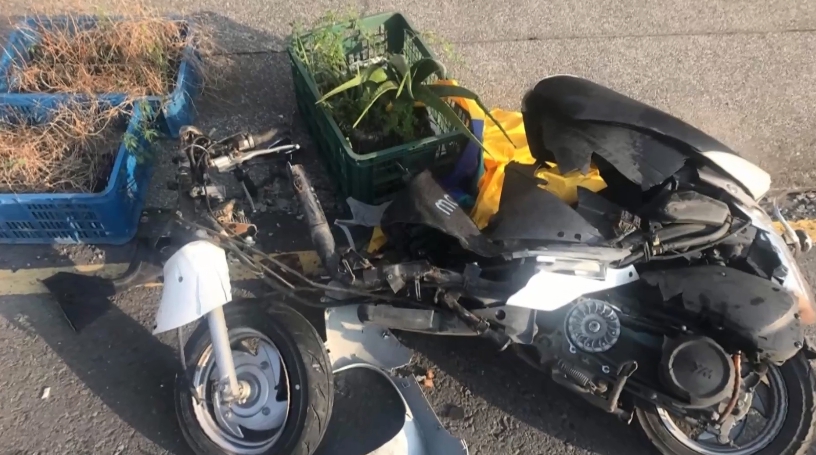 目擊民眾:「機車撞得很破碎,(汽車撞的?)對,(他是直線來還是斜向?)那輛機車是逆向。」