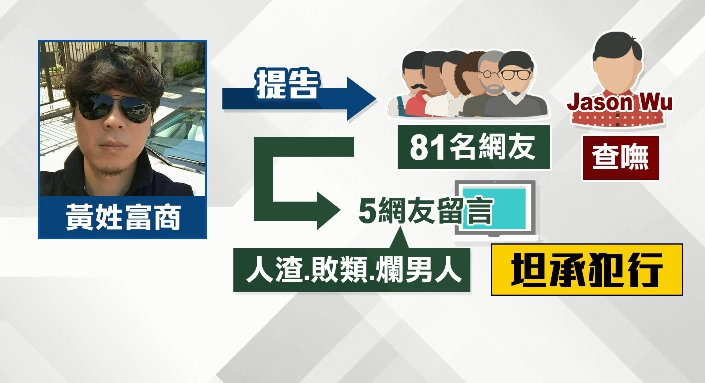 黃姓富商要求5名網友在網路上道歉,最後紛紛和解撤告,檢方做出不起訴處分,剩下的網友散布全台,已經聲請高檢署交給其他地檢署偵辦,這回富商以和解收場,無疑是希望網友在網路留言小心謹慎,別躲在鍵盤後面議論是非。