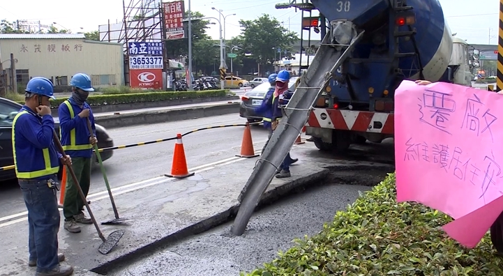 楠梓高楠公路馬路9日突然爆裂,一問竟然是台塑委託