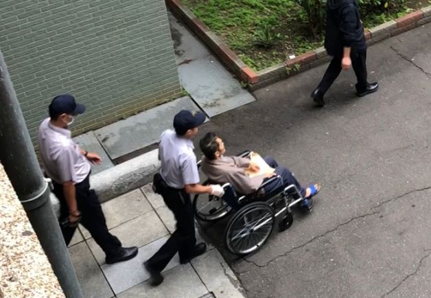 ▼蔡京京的丈夫曾智忠坐輪椅出庭。(圖/中央社)