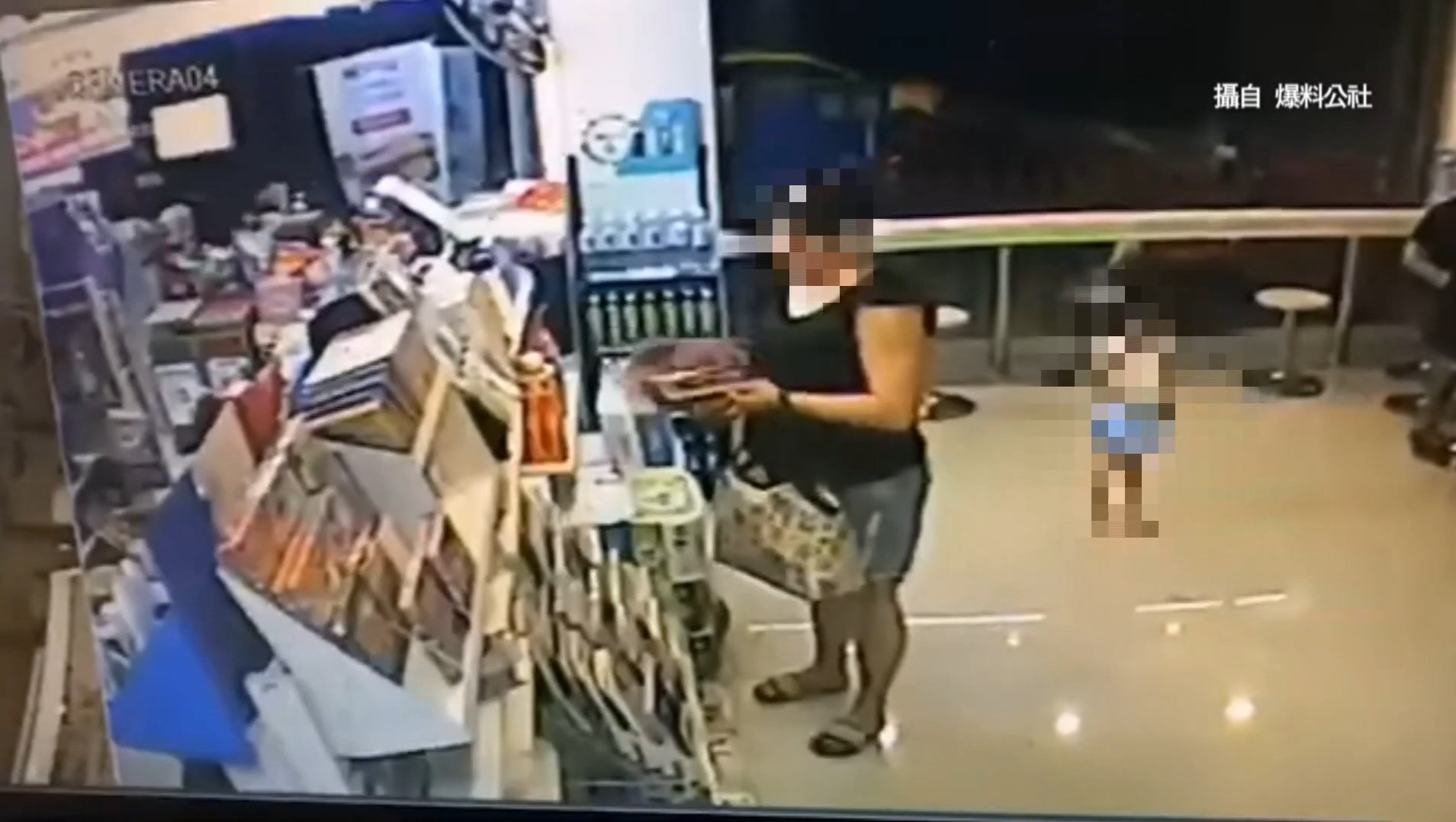 一名婦人牽著小孩走進超商,一路走到放遊戲的那一區,女子先從袋子拿出一盒遊戲盒放在架上,再拿上方的遊戲盒和舊卡放在同一層,接著把舊的放到上方,接著女子拿著雜誌,並走到左側假意翻雜誌,其實,她是在查看店員有沒有注意到她在偷東西,看到沒人發現後,婦人直接把新的遊戲盒放進手提包,女子來來回回走動,用同樣的手法得手好幾盒遊戲盒,而女兒在旁邊幾乎全程目睹。