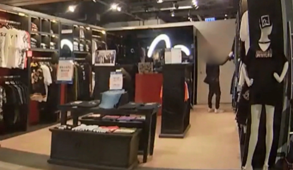 黑衣男子走進日本潮牌店裡,逛了一下後,發現收銀台沒人,就往裡面走去,站在旁邊左顧右盼,確定都沒人經過後,大膽伸手打開櫃子,一把拿走店員的手機,放進自己的口袋中,離開時還回頭看了一眼,整個過程不到30秒,但全程都被對面的店家記錄下來。