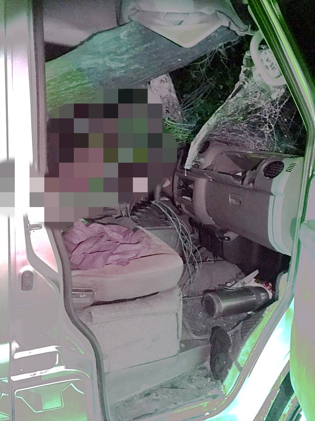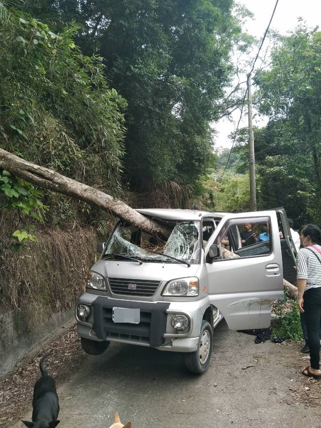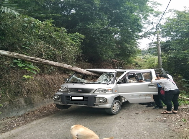 苗栗一名51歲劉姓男子7月6日晚間獨自開車外出釣魚,卻在行駛途中撞上倒塌樹木,長約10公尺的樹幹從前擋風玻璃插入貫穿,從左後車門穿出,導致整台車被騰空撐起。劉男當下尚有意識負傷打電話求救,當家屬和警方抵達現場、緊急送醫,不幸送醫前仍宣告不治。
