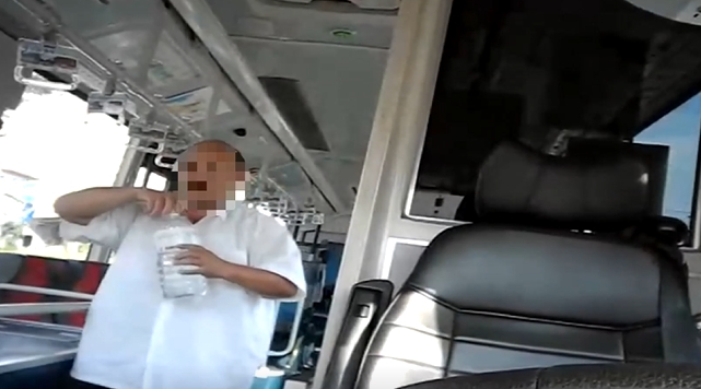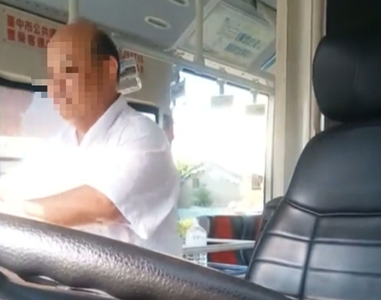 手機放在擋風玻璃前,對著自己錄影,一張嘴不斷碎唸,講話講到口渴,再次起身到走道邊拿水喝。公車行進中,司機竟然像在走廚房,民眾看到畫面驚呆。