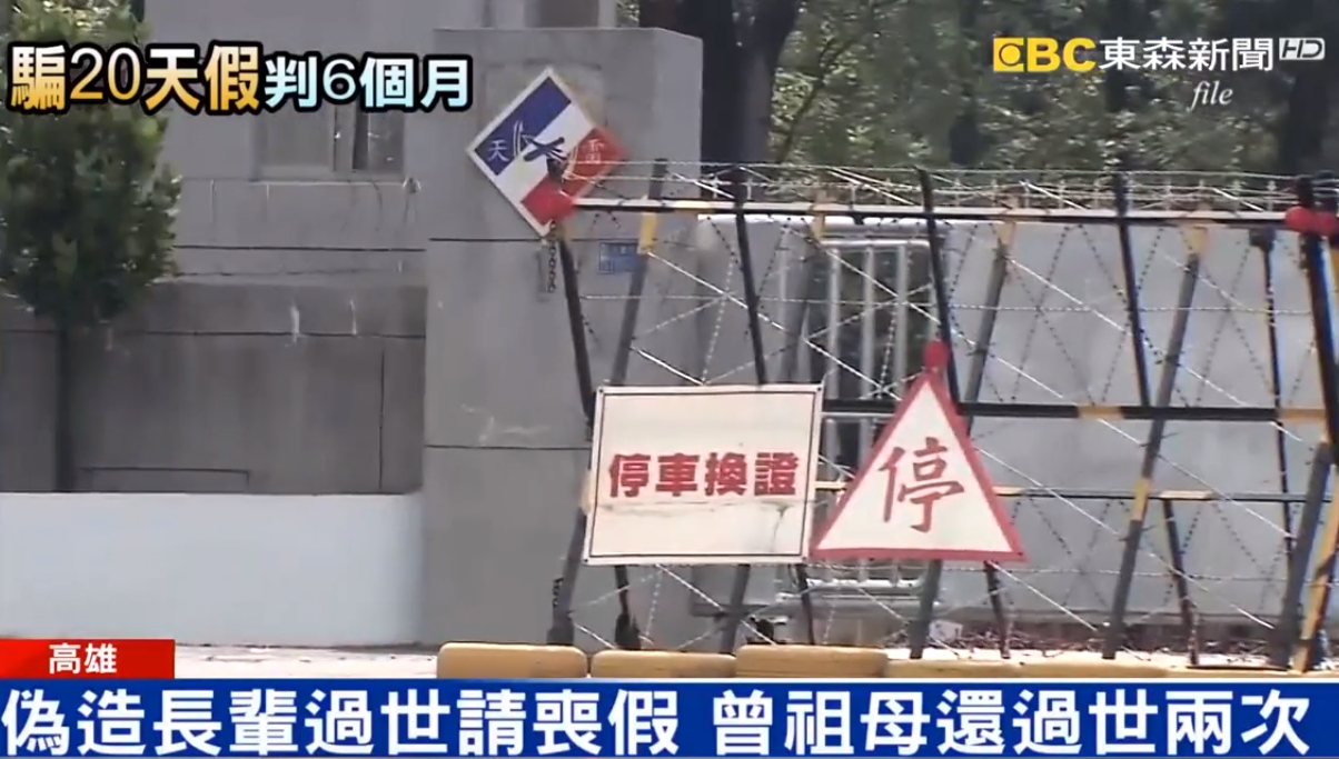 高雄一名李姓男子在陸軍八軍團砲指部服役期間,為了休假,竟然在三個月內接四次,謊報曾祖母及祖父母等人過世,拿假單總共請了二十天的假,後來連長發現他家中長輩怎麼一直過世,才揭發他的騙局,法官因此判他六個月的刑期,可以易科罰金十八萬。