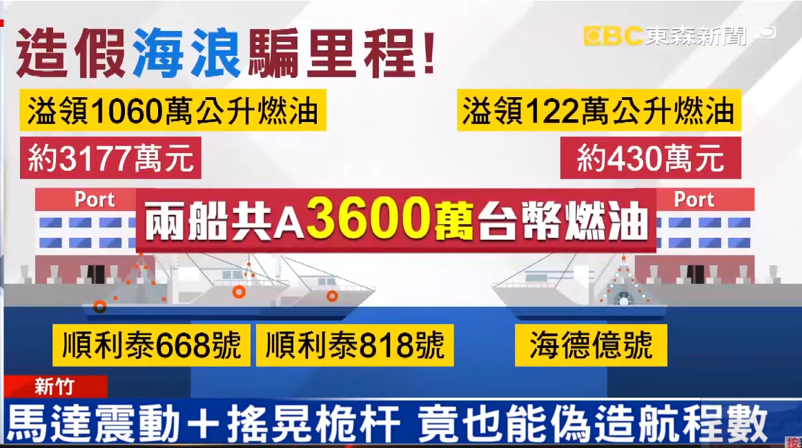 政府為了照顧漁民出海打魚辛苦,在每艘漁船上設置航程紀錄器,來算里程補貼燃油,但在新竹卻傳出有3名不肖船長,在漁船停止狀況下,利用工具仿造海浪增加航程數騙燃油。