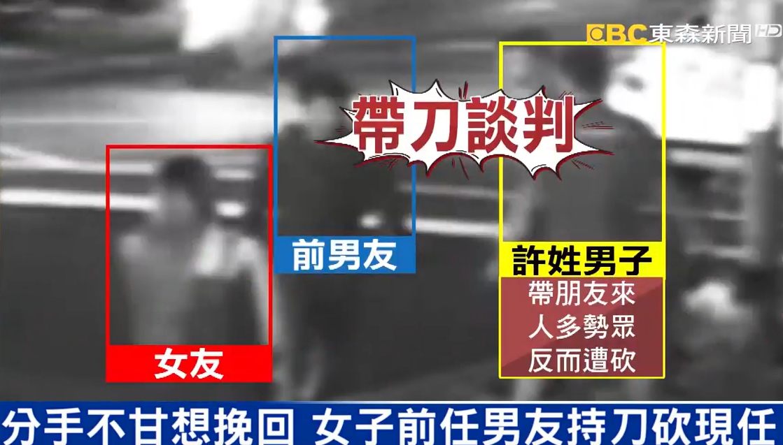 情敵談判,結果演變成街頭濺血。新北市一名許姓男子,因為不滿女友的前任男友分手後繼續糾纏不休,要求對方遠離女友,兩人相約談判,許姓男子帶了朋友助陣,兩邊爆發激烈口角,最後前任男友持預藏西瓜刀砍傷現任許姓男子,當場遭警方逮捕。