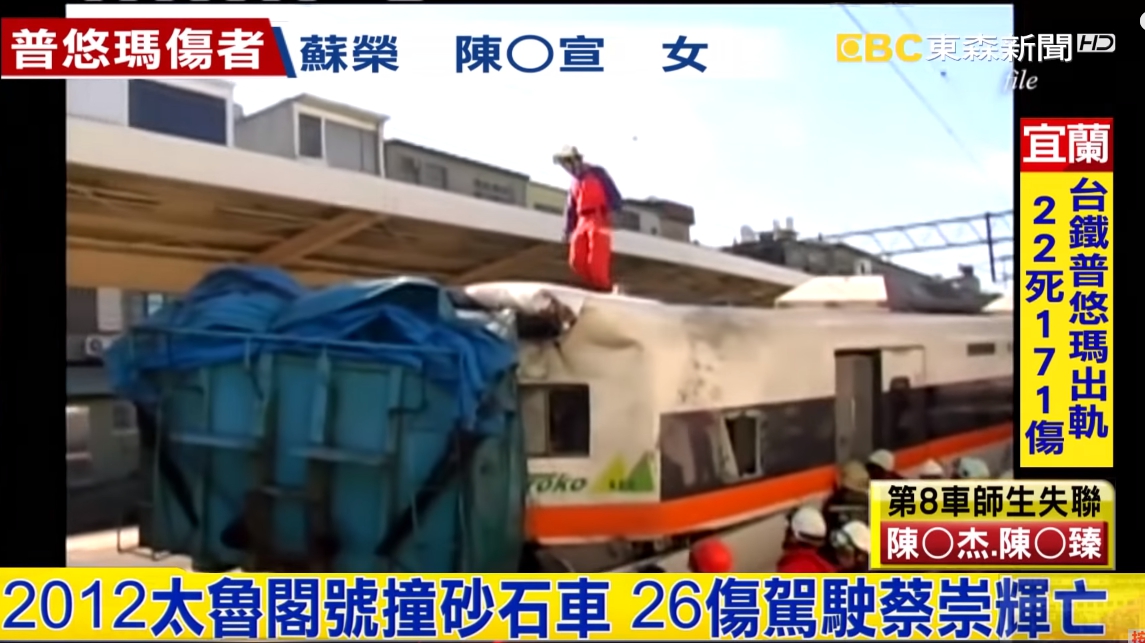 2012年1月,滿載著3百人的太魯閣號列車,在埔心站撞上闖越平交道的砂石車後嚴重脫軌,第1節火車頭幾乎被削掉一半,這起嚴重的台鐵事故不僅造成26名旅客輕重傷,還奪走了列車司機員蔡崇輝的生命,看看台灣現代鐵路的出軌翻覆意外,而台鐵也證實,普悠瑪號在新馬車站出軌搶救,也成為了台鐵引進普悠瑪號以來,發生最嚴重事故。
