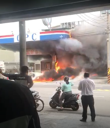 警消表示,現場是包商施工更換加油機台過程造成加油機起火燃燒,燃燒面積約1坪,至於詳細原因及肇事責任待進一步調查。