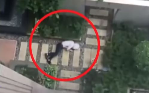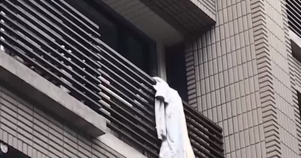 只見男子躺在一樓地面上,一動也不動,雙腳似乎還想要站起來,但根本動不了,三樓女兒牆上還掛著一條棉被,原來男子畏罪想要逃逸,異想天開綁棉被跳窗,企圖從4樓陽台逃逸,只是棉被還在3樓,人卻已墜落1樓。