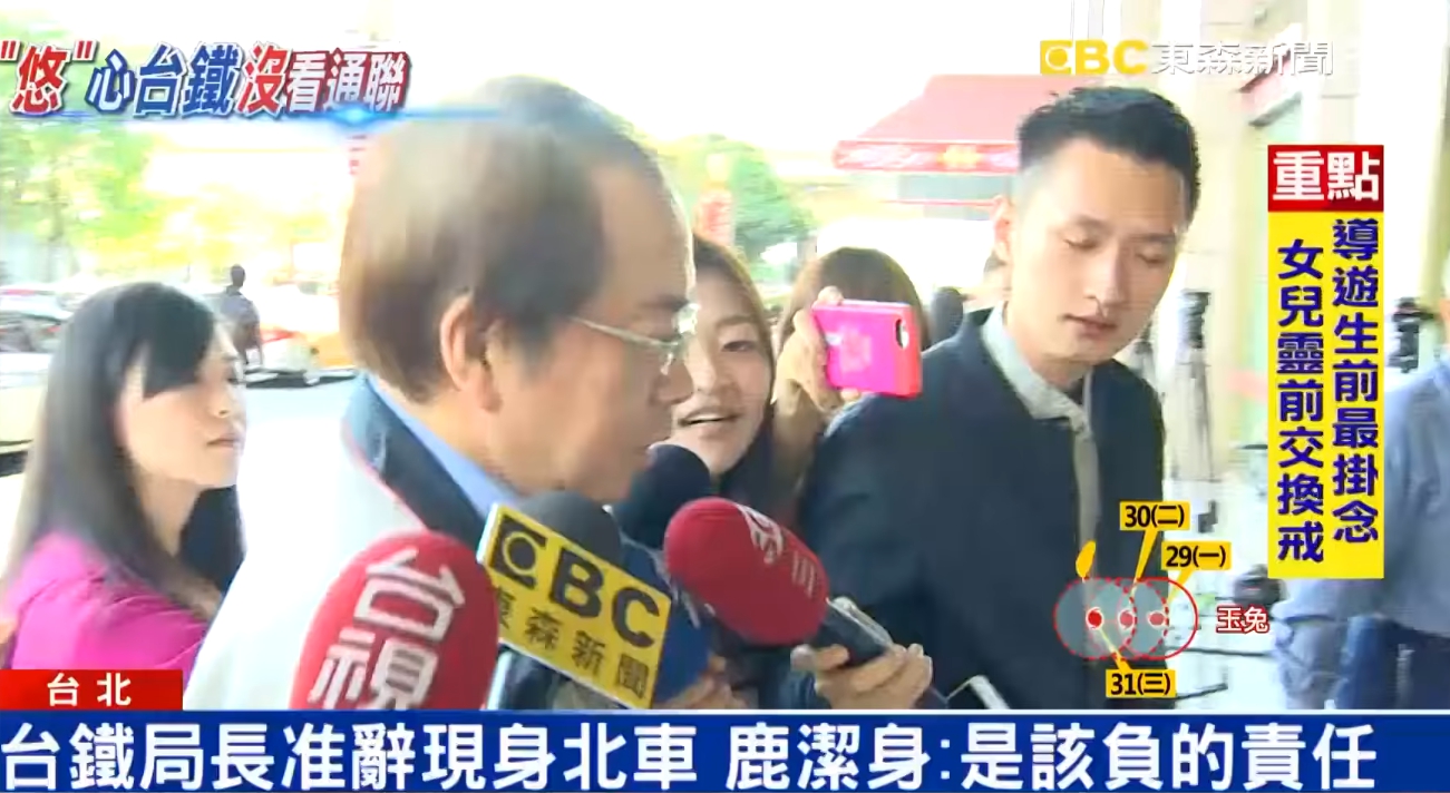 台鐵局長鹿潔身:「謝謝!(記者:會不會覺得委屈)沒有,這本來就該擔的責任。」