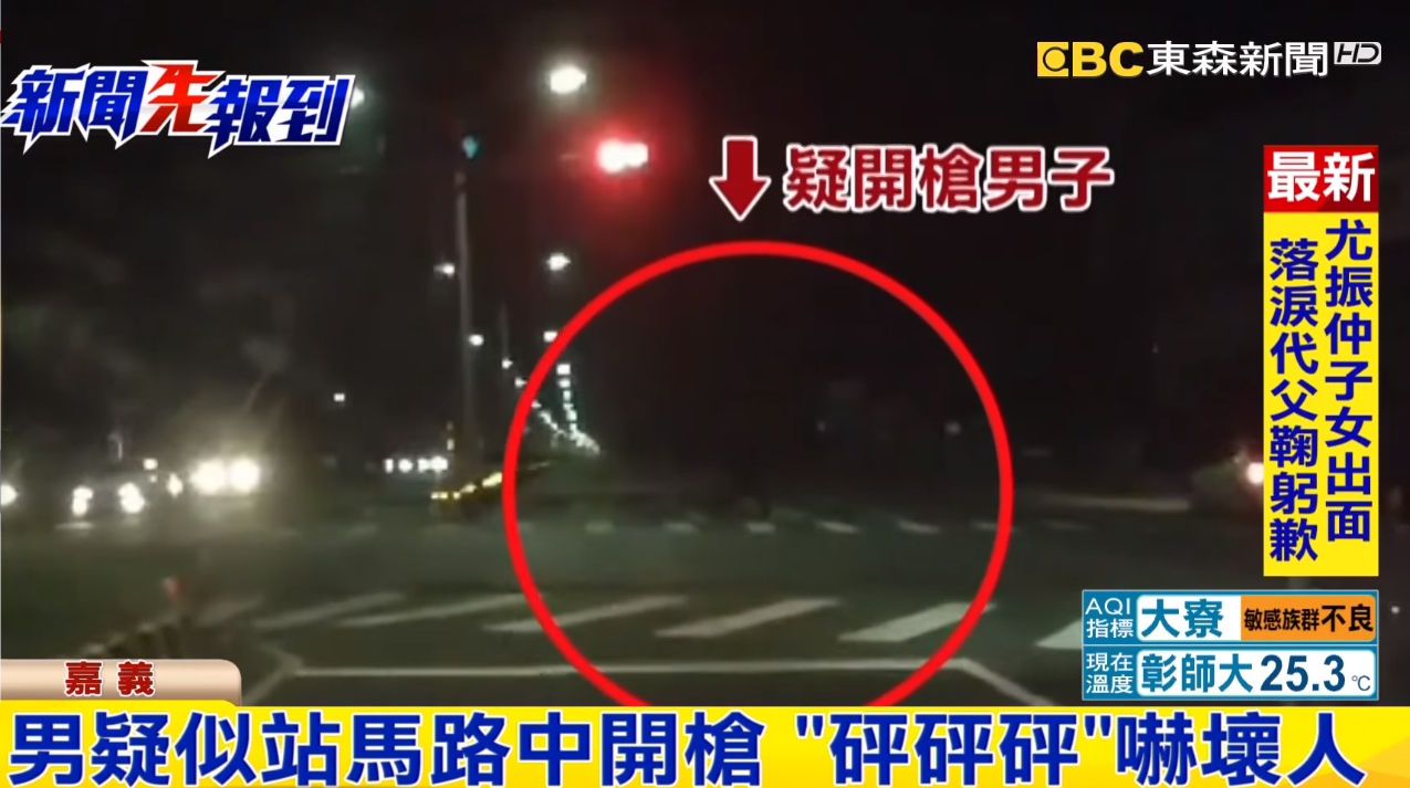 嘉義縣水上分局副分局長黃堃洲:「那現場是沒有發現類似槍擊的跡證,也沒有人受傷,也沒有發現被害。那我們正積極透過路口監視器,了解看看是否有涉案人車。」