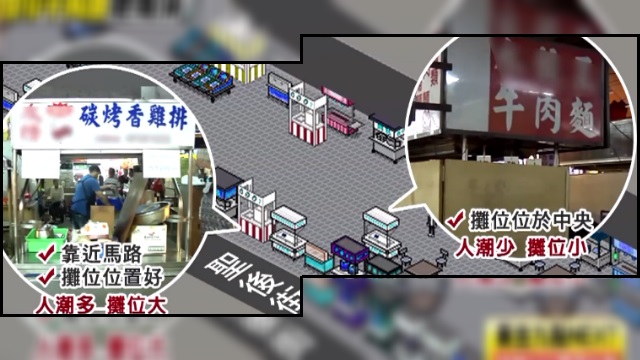 (圖/雞排店靠近馬路攤位位置好,人潮相對比較多,攤位也比較大,但牛肉麵店位置在正中央,遊客大多不會特地繞過去消費,攤位也比雞排店小)