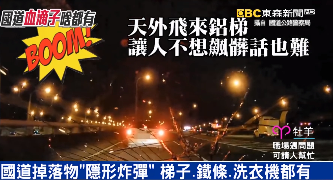 國道上的掉落物真的是很多,不管是鐵條、梯子、塑膠板甚至還有洗衣機都掉落過,最誇張的是豬隻沒綁緊,最後在國道上亂跑實在很危險。載貨物上國道一定要綁緊,如果掉落就會被開罰9000元罰單!
