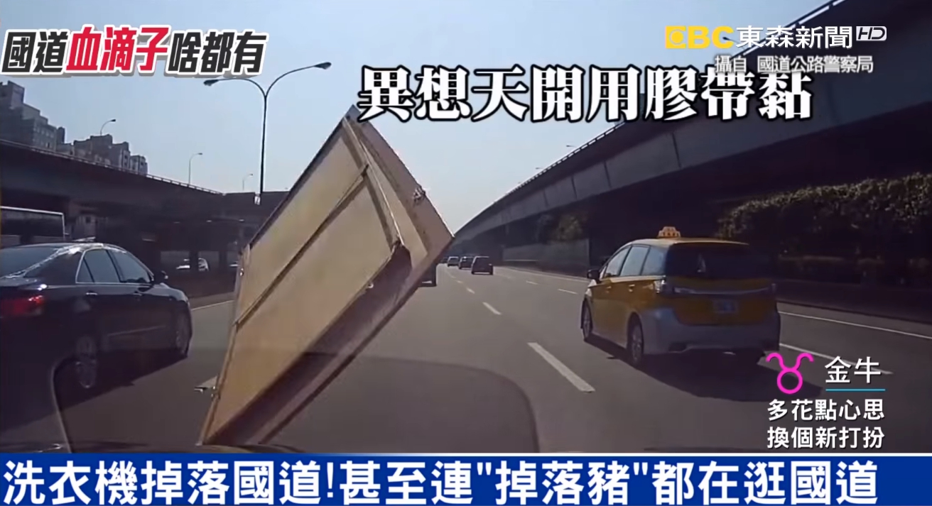 種種荒唐掉落物讓人看得傻眼,但載送東西上國道掉了下來,可是會吃上罰則。