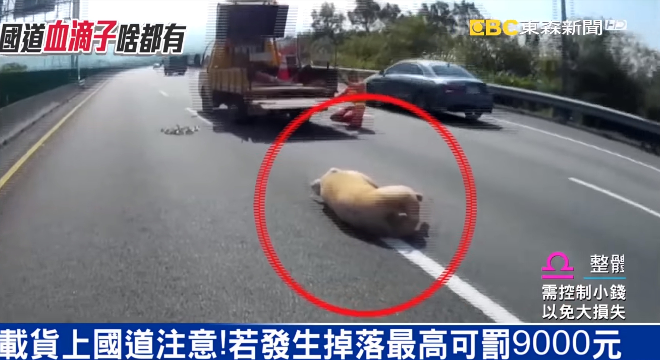 載豬的貨車有兩隻小豬逃跑,就在國道上演老鷹抓小雞,看得讓人捏的一把冷汗。但在國道東西掉了可別自己輕易撿。