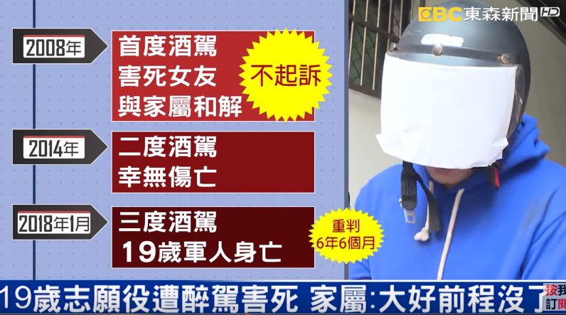 基隆一名男子,2008年酒駕害死女友,雖然和死者冥婚獲得家屬原諒,但沒想到他2018年再犯,同時也是三度酒駕,撞死年僅19歲的志願役軍人,最後法官判決男子6年半刑期。