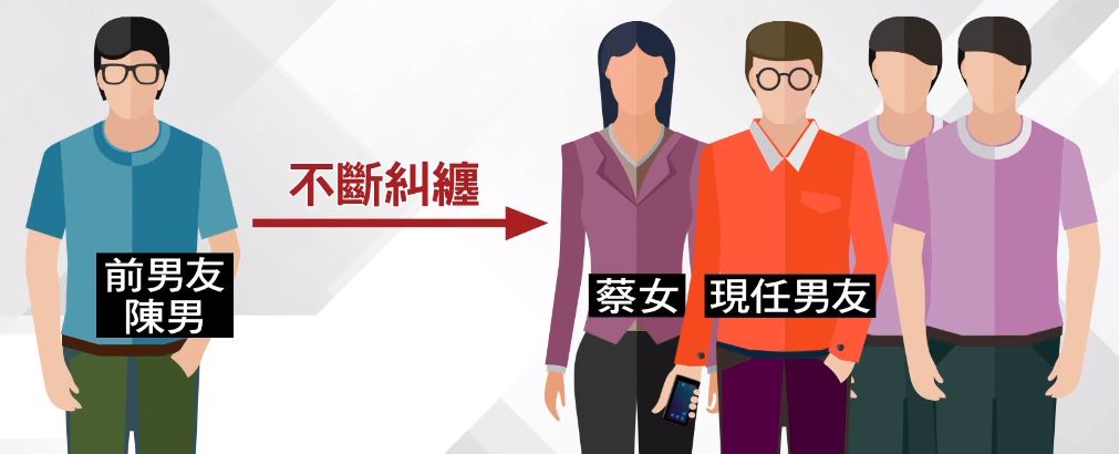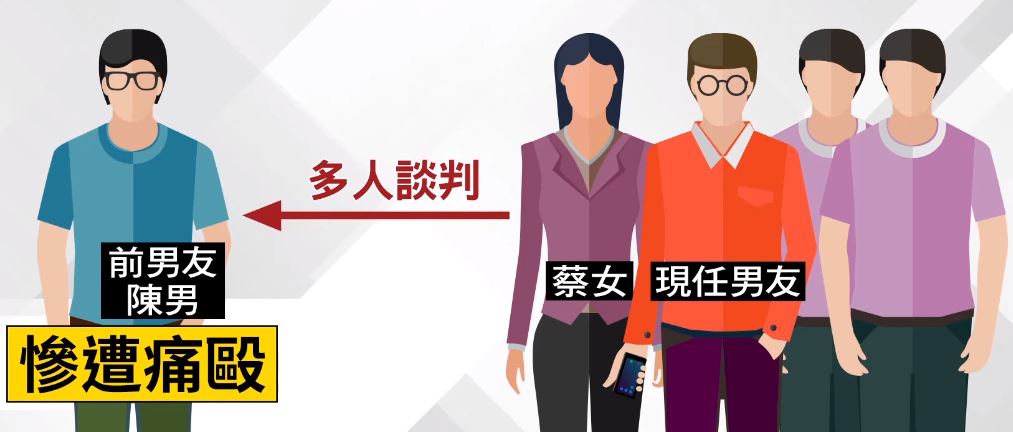 到有什麼深仇大恨,兩名男子對被害人痛下毒手?原來蔡姓女子的前男友,陳姓男子分手後,還不斷糾纏她,女子不堪其擾,告訴現任男友,男友便請2名男子和女子一起去談判,談判破局,陳姓男子慘遭痛毆。