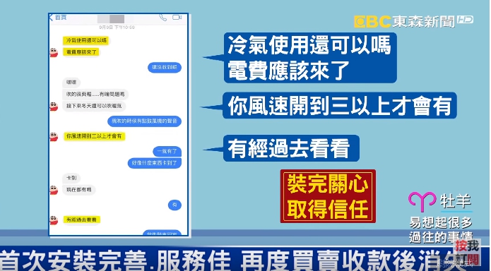 指控買冷氣遭騙李先生:「讓我們感覺到他服務還滿周到,裝完之後還是有陸陸續續打電話來說,你在使用上有什麼問題。」