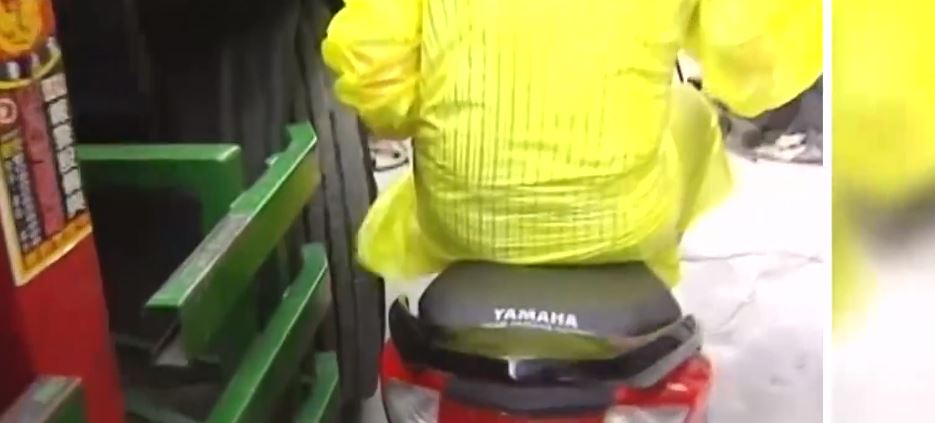 後座乘客整個人飛了起來,在空中旋轉一圈後重摔倒地,安全帽還掉在一旁,爬起來後雨衣還扯在車輪下,因為她穿著斗篷式雨衣又沒壓好,雨衣衣角被捲進車輪,還好後方汽機車趕緊停下,否則後果不堪設想。