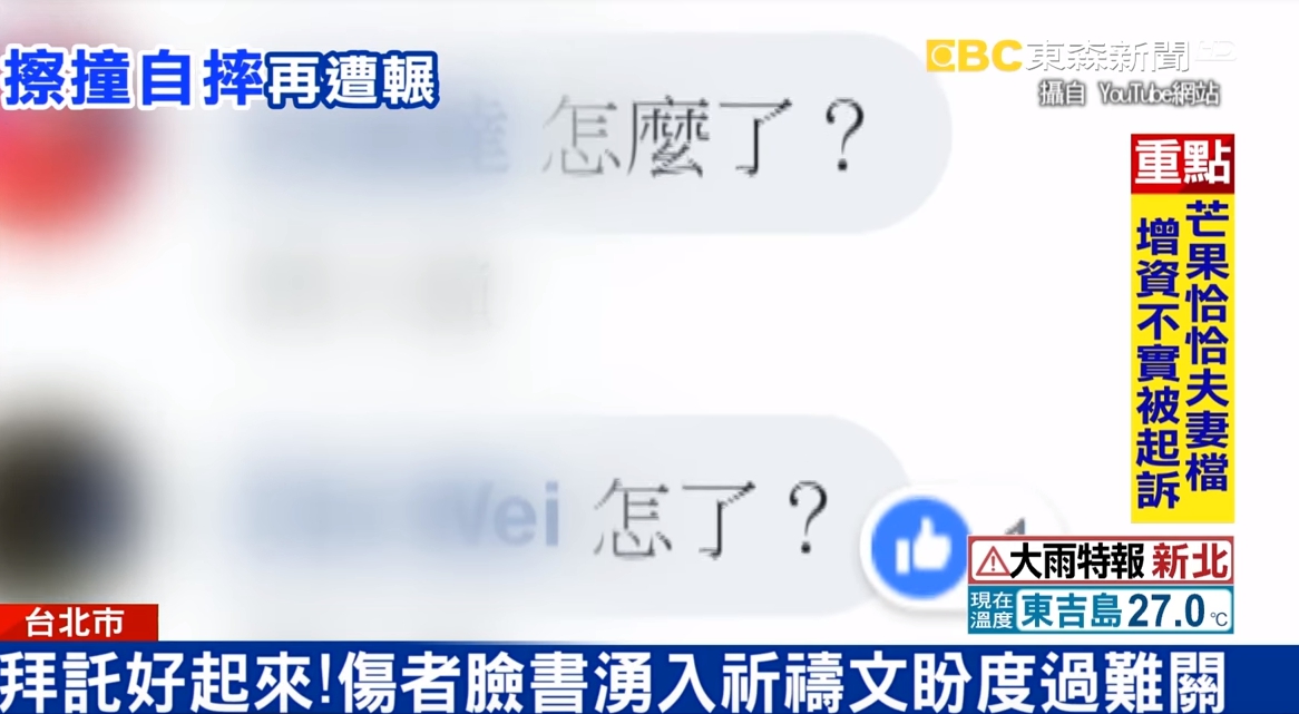 遭撞的程姓傷者年僅22歲,在鐵板燒店上班。平常穿著時髦,也放上許多騎車照片,發生車禍後許多朋友聽聞紛紛湧入臉書,祈禱他能度過難關。現在除了傷者仍在跟死神拔河外,警方也要調閱周邊監視器跟行車紀錄器,到底是變換車道不慎還是沒注意撞上,未來還得要查個明白。