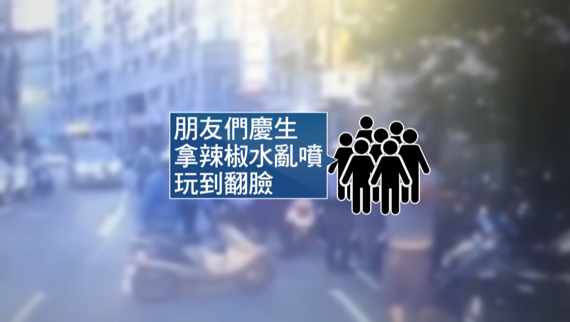 新北市一家機車行前有民眾報案,7名青少年包圍1人,叫囂推擠,火氣很大,警方到場發現 被害人眼睛紅腫坐在路旁,但他告訴警察,自己沒有被打,現場一共八人,都說彼此是認識的,只是幫朋友「慶生」,沒想到玩辣椒水玩到翻臉,其中有人噴到眼睛,爆發衝突。