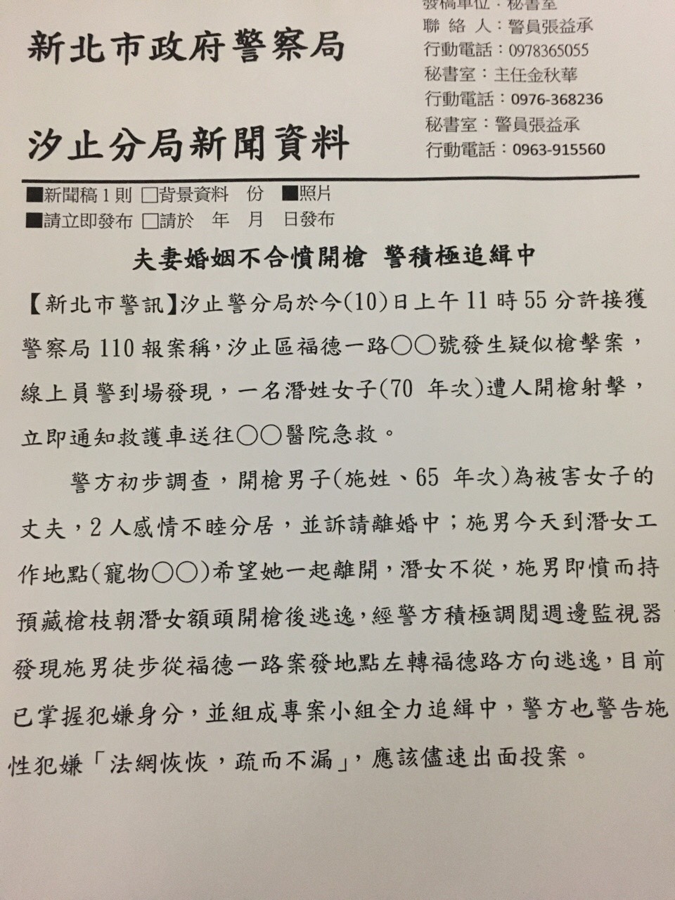 碰!汐止傳槍響 女子遭夫爆頭身亡