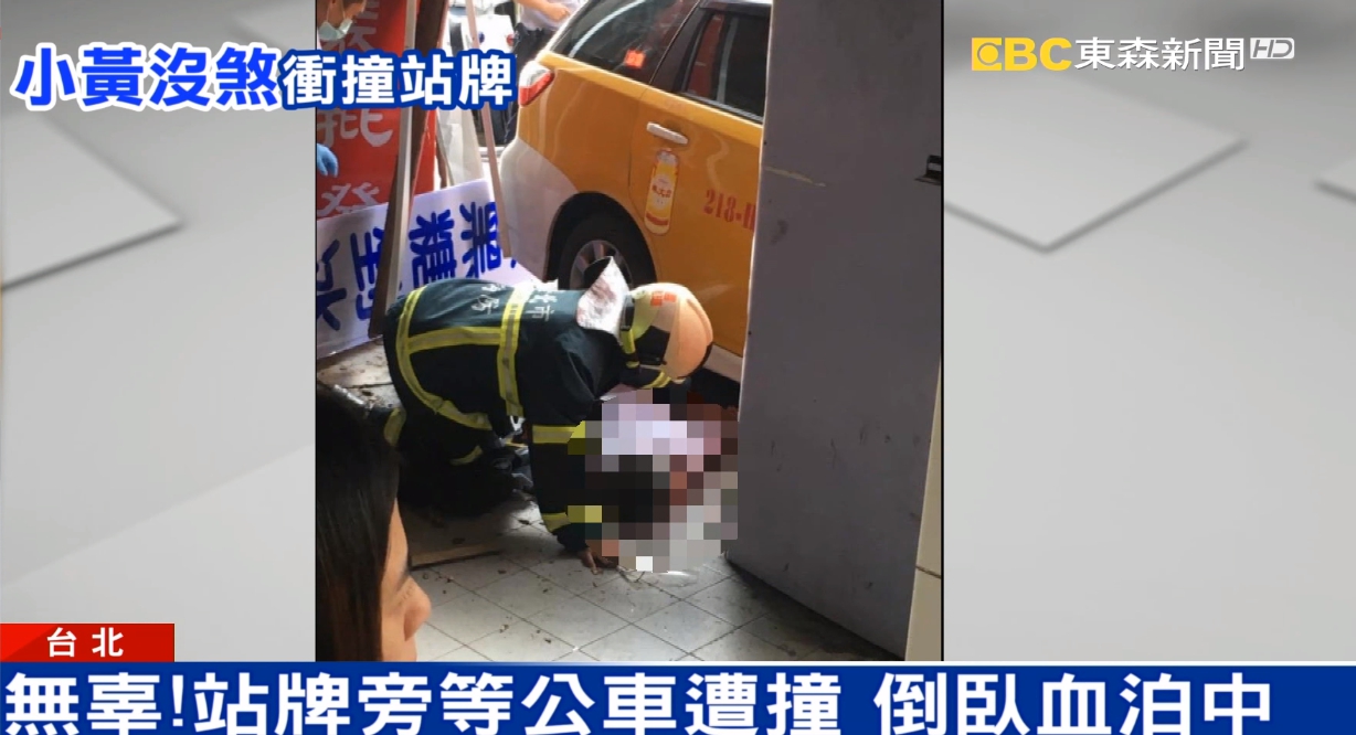 目擊民眾:「(聲音)很大很大,非常大!砰啊!就有一個婦人就躺在前面,計程車旁邊就躺一個阿伯,看到當場的時候,我就覺得那個男的應該是沒救了,很嚴重啦。」
