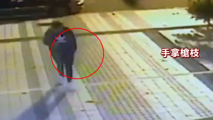 東森新聞記者李家名:「槍手當時先發現被害人在附近打卡,於是開車前來查看,一看到被害人的車輛,立刻下車連開了好幾槍,就連擋風玻璃都被打破,而被害人在車上被嚇到,立刻下車逃逸,沒想到這名槍手還緊追在後,沿路開槍。」