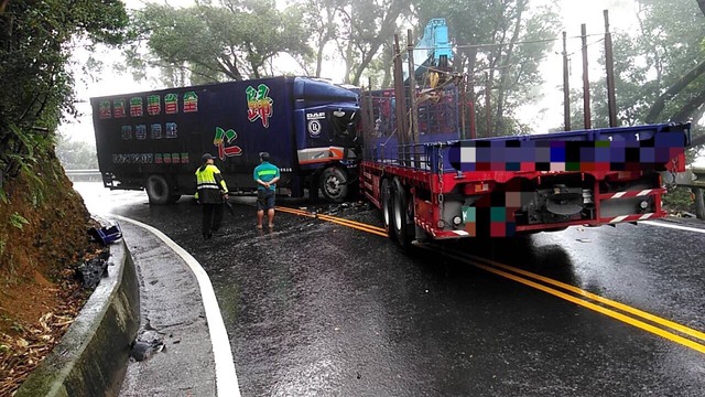 兩輛大貨車今(17)日上午11時許行經北宜公路時發生對撞,一名司機受困車內,消防局派員前往搶救,中午12時許協助司機脫困,共有3人受傷送醫,肇事原因仍有待調查。